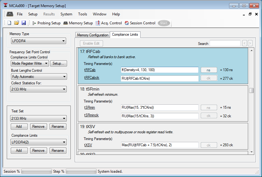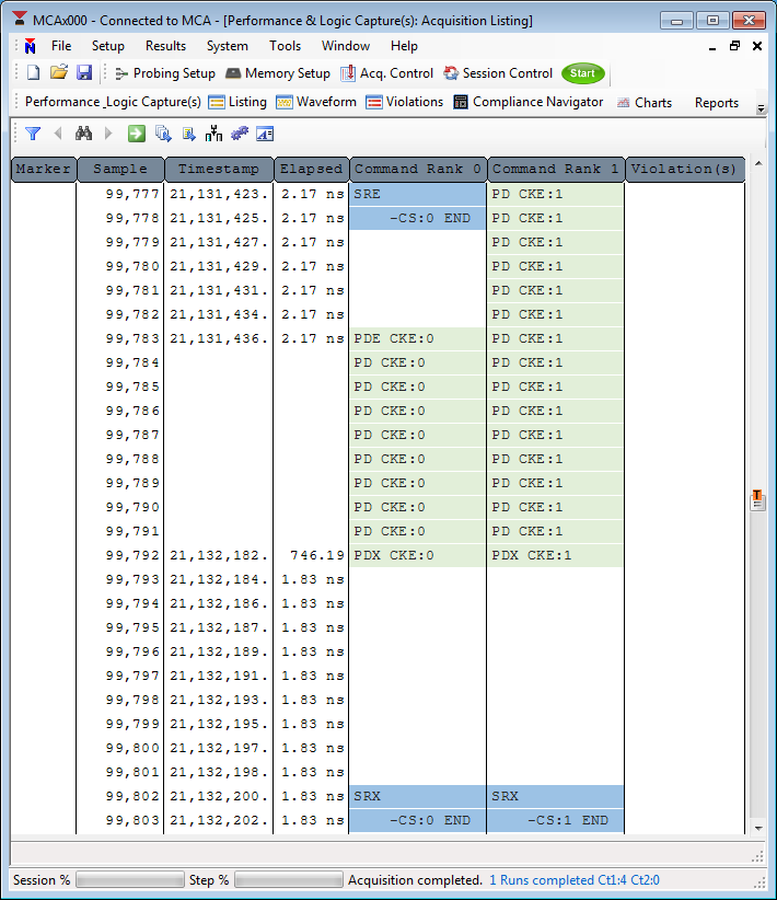 With the push of a button the MA5100 starts acquiring and analyzing the memory bus in real-time. When a frequency change occurs, the analyzer responds, in real-time, collecting statistics for any one or all frequencies as well as margin testing (looking for violations) specific to each, of up to sixteen, independent frequencies and sixteen sets of margin limits. What does this mean for our users? It means they can run the analyzer once and verify the protocol and margins for every command – missing nothing – in real-time for every frequency.