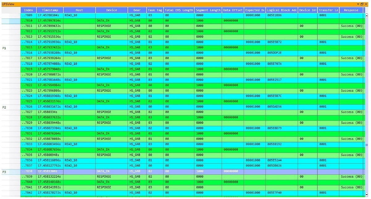 Windows based protocol analysis software, provides industry best protocol correlation between UFS to UniPro and MPHY layers. Time correlation between the different protocol layers significantly reduces debug time of designs. Floating window design of this software allows engineers to view UFS view, UniPro view and MPHY view on different computer monitors and automatically correlate the UFS packets to MPHY layer. This makes analysis very easy while analyzing the gigabytes of Protocol information.