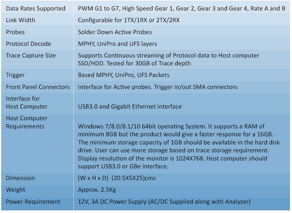 PGY-UFS3.X-PA Protocol Analyzer allows Design and Test Engineers to obtain deep insight into UFS host and device communication. MPHY/UniPRO/UFS packet-based triggering allows speci?c protocol data capture and analysis. PGY-UFS Protocol analyzer instantaneously provides decoding of UFS, UniPro and MPHY layers with a correlation to MPHY, UniPro and UFS layers.